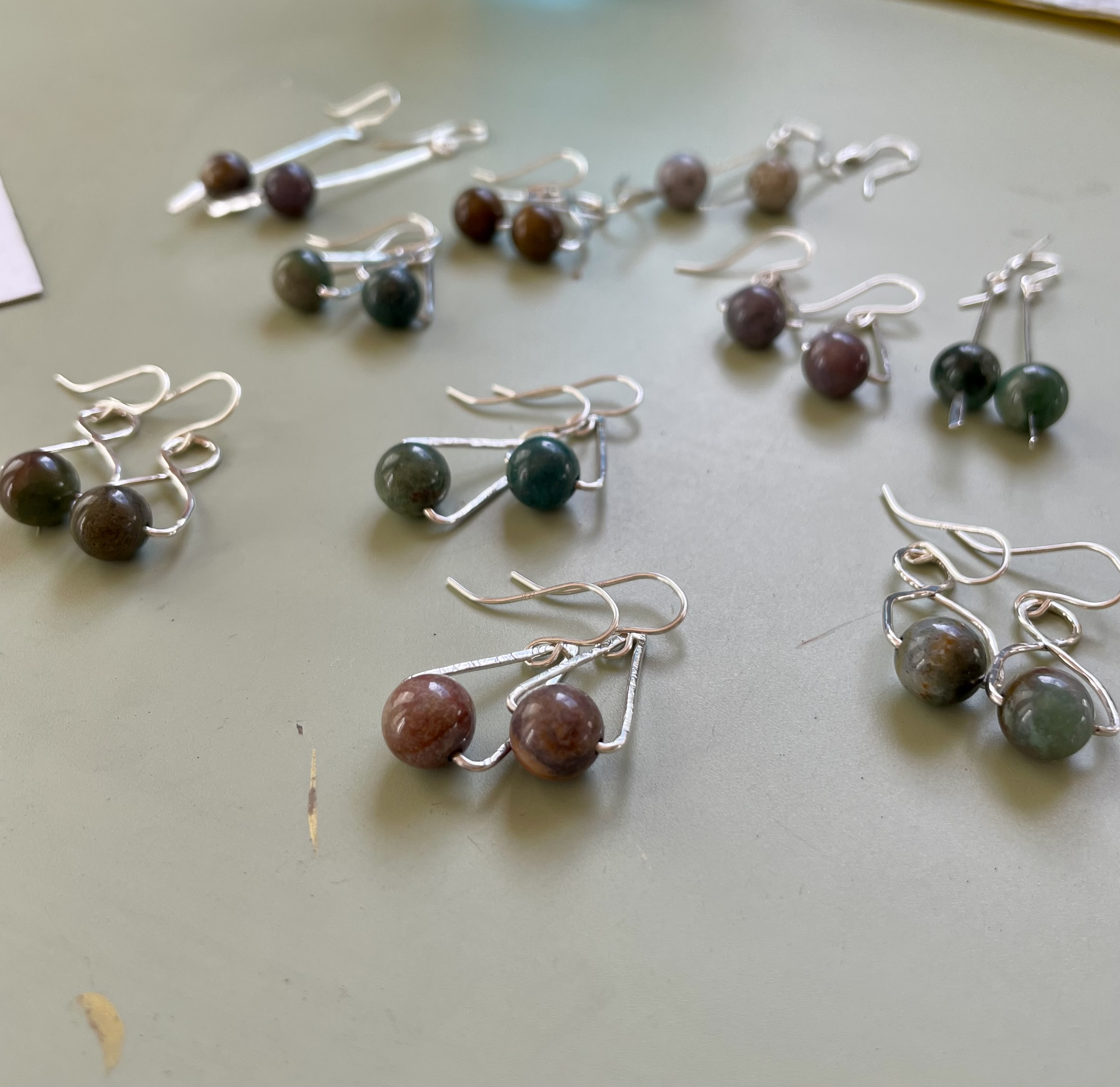 I make Jewellery using recycled silver, these have an organic feel from the natural materials I use to impress into the silver to create texture and form. I also up-cycling biscuit and gift tins to make earrings.
